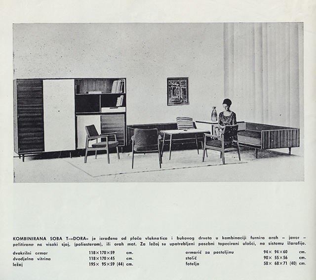 Blaženka Kučinac pri radu na stolici iz kombinirane sobe T-“Dora”, serijskom proizvodu iz 1962